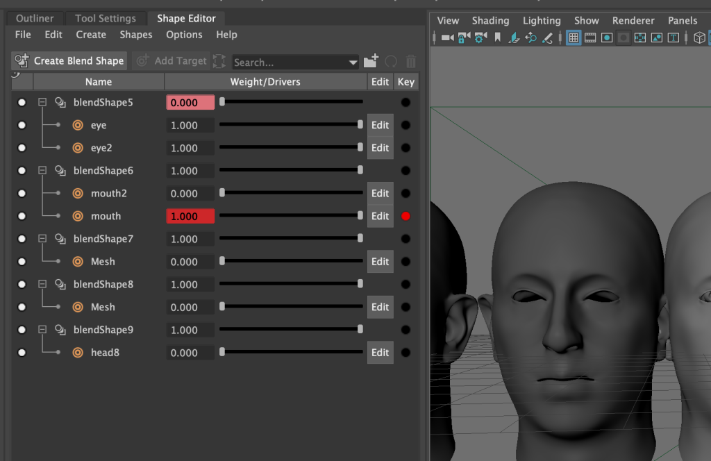 After you’ve done that, it’s time to finish the expression part. The shape editor is used here. Animation of facial expressions by different adjustments to the five features.